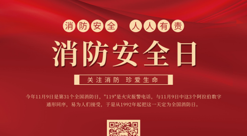 “消防安全日119”的由来1992年,公安部发出通知,将每年的11月9日定为“119消防宣传日”。消防宣传是以提